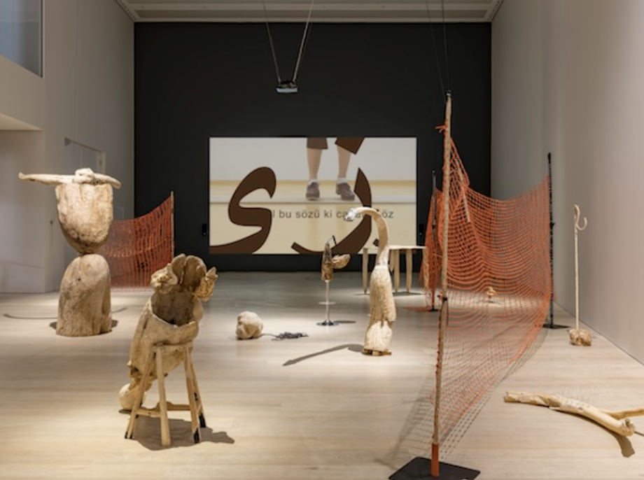 The exhibition titled GLOSSOLALALA presents individual works by Johanna Gustafsson Fürst and Dilek Winchester, produced in different places and in different mediums. The exhibition brings these works together on common ground, through encounters and negotiations. It explores the possibilities of creating a space for common experience and building a polyphonic community by way of singular artistic practices. Centred around the issue of language, the works on display bridge language with sound, text, body and space.